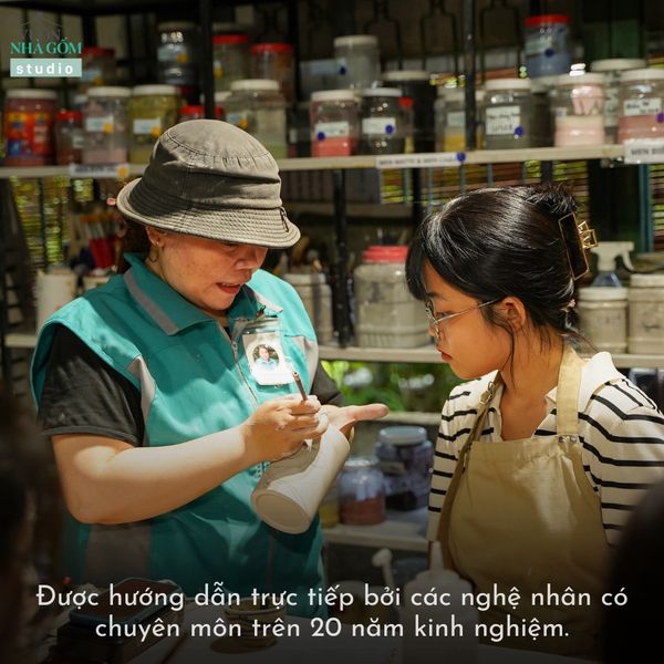 - Cùng những nghệ nhân có hơn 25 năm chuyên môn và kinh nghiệm đang làm việc tại xưởng gốm Thủ Biên (thuộc hệ sinh thái Vườn Nhà Gốm).