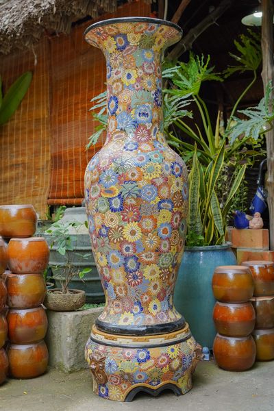 Với tổng chiều cao lên đến 1m70 (bao gồm chân đế rời), cặp bình có số lượng rất hạn chế vì độ khó, công phu trong việc thực hiện sản phẩm to trên chất liệu gốm phụ thuộc vào tay nghề và kinh nghiệm của những người thợ gốm lão niên.