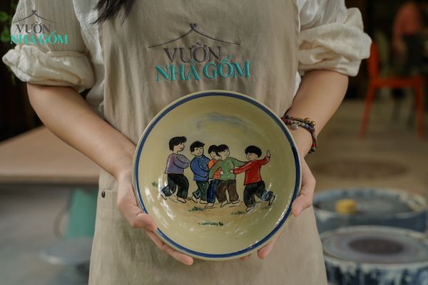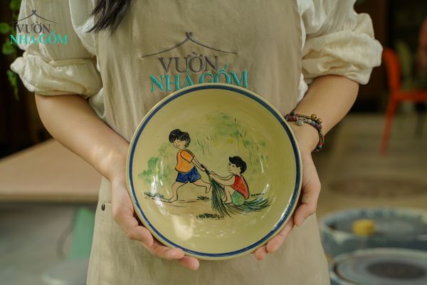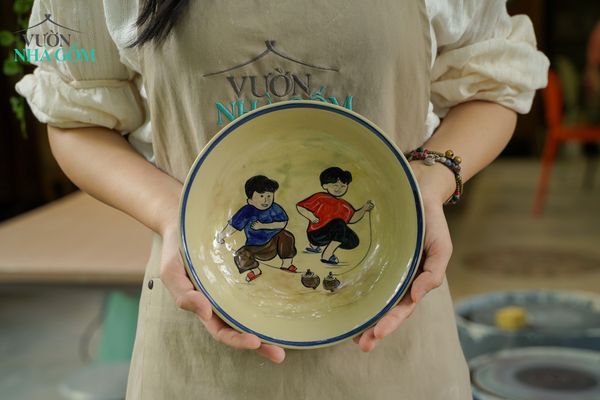 🍂 Hình thức thực hiện: Vẽ tay bằng màu chuyên dụng của gốm, sau đó nung trên 1.100 độ C.