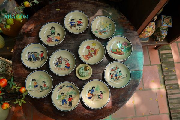 Tuổi thơ, trò chơi dân gian ngày Tết, những điều ước của người lớn, được vẽ lại qua nét vẽ của Nguyệt Ánh - Artist thuộc Vuonnhagom.studio - Trung Tâm Đào Tạo Nghề Gốm Thủ Công .