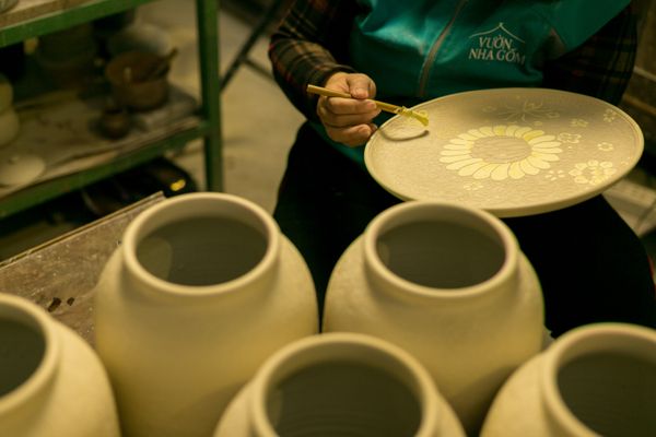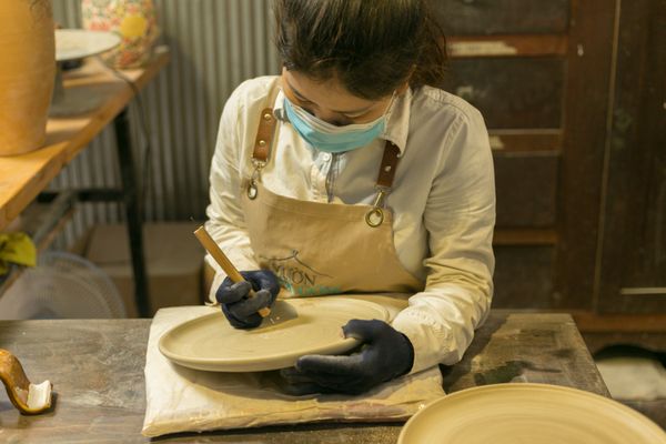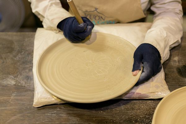 Đễ dễ hiểu hơn thì cùng nhau xem một ngày tại Xưởng gốm, đi qua các công đoạn làm sản phẩm đĩa gốm khắc bách hoa thủ công.