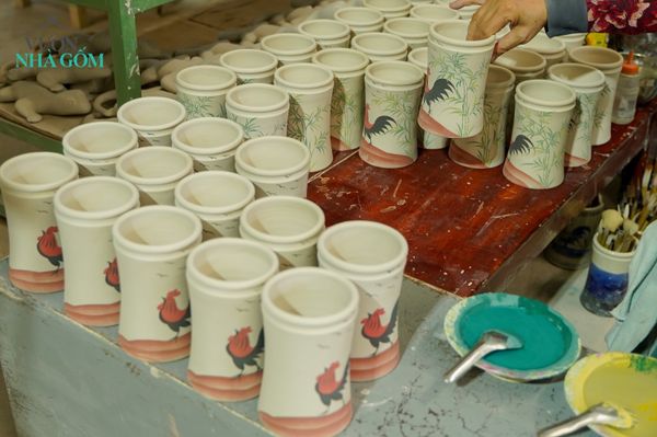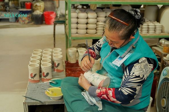 Tuần trước, khách tham quan xưởng gốm Thủ Biên sẽ tận mắt thấy cô Yến đang vẽ hoạ tiết chú gà trống Lái Thiêu trên ống đũa. Xưởng Thủ Biên thực hiện theo đặt hàng cho một nhà hàng phong cách thuần Việt tại Dubai.