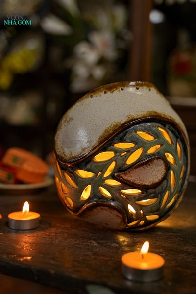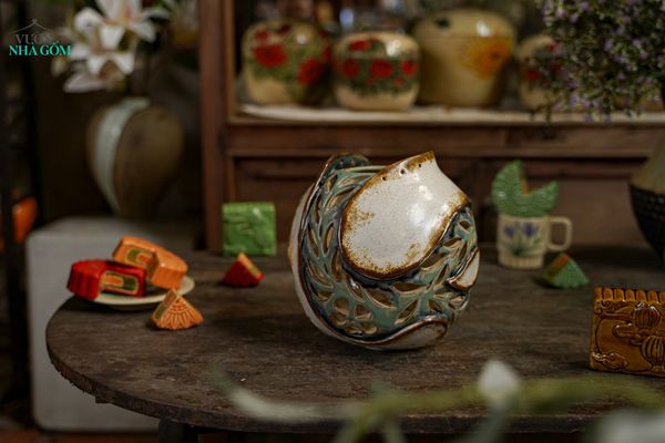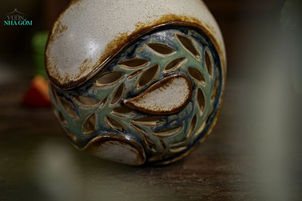 Điều làm nên hồn tác phẩm chính là lớp men gợi sự sâu lắng như gợi nhớ ký ức của khúc nhạc thu ngân nga, có gì đó lắng đọng mà khó dứt ra. Từng đường nét đều như vòng tay ôm lấy chút gió và ánh sáng của mùa thu, để mùa ấy nằm yên trong lòng gốm.