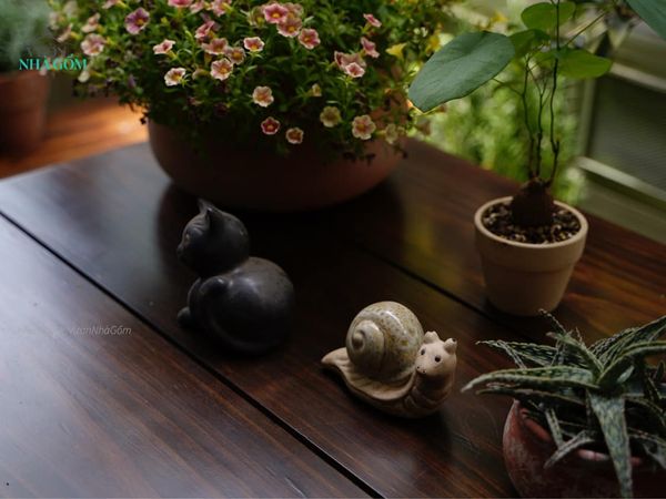 Các sản phẩm chậu trồng cây, tượng và thú gốm của Vườn Nhà Gốm tại Boki Garden.