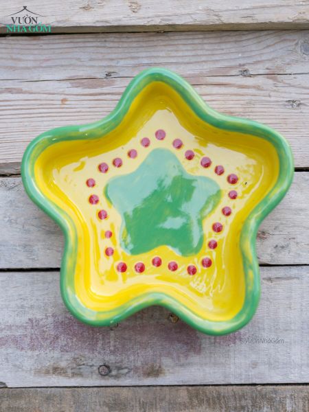 Lần này học viên dài hạn đến Vườn để làm những món đồ nhỏ xinh: Chị làm đĩa hình ngôi sao, dĩa hoa đựng kẹo và đĩa đắp nổi cánh hoa đỏ mỏng manh tinh tế.