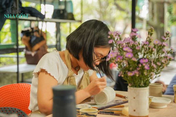Có lẽ với Quỳnh việc sáng tạo, chạy deadline quên hết thời gian đã như hơi thở mỗi ngày, nhưng bạn tạm gác lại 2 ngày cuối mỗi tuần, đi bon bon đến Trung tâm đào tạo nghề gốm - Vuonnhagom.studio để tham gia khóa học làm gốm thủ công 16 buổi, để chill, và để tìm nguồn cảm hứng mới cho công việc từ chất liệu gốm.