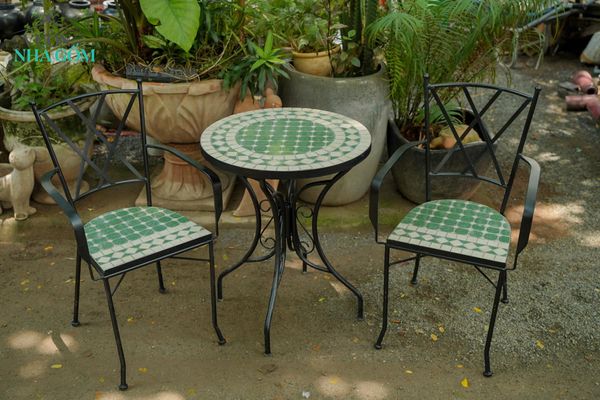 Thứ 2, BỀN & TIẾT KIỆM: Bàn được sản xuất với thiết kế và tiêu chuẩn xuất khẩu, mặt bàn/ghế được ghép từ các mảnh gốm nung ở nhiệt độ cao, cứng cáp, bền màu, các khung sắt được phun lớp sơn tĩnh điện chống rỉ sét, nhờ đó nâng cao hiệu quả sử dụng và tiết kiệm chi phí.