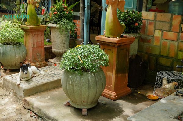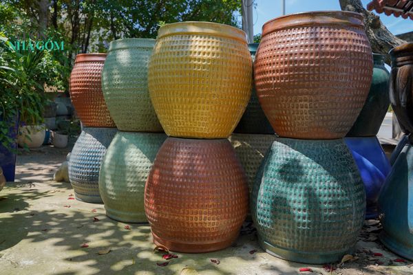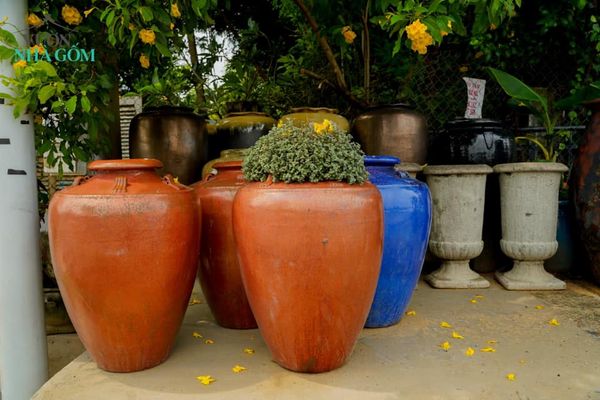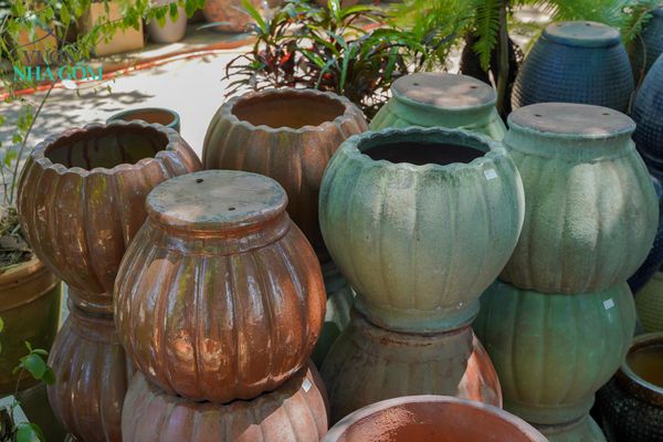 Nhóm chậu được nung lò củi, kiểu dáng và men màu thiên về thẩm mỹ của sự giản đơn, để dễ dàng kết hợp với nhiều không gian kiến trúc và đa dạng loại cây.