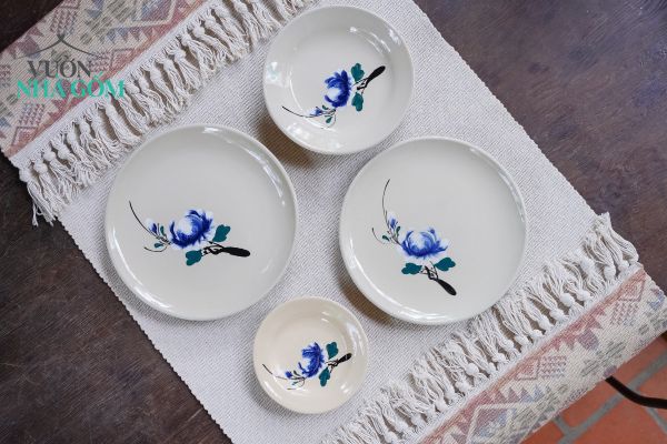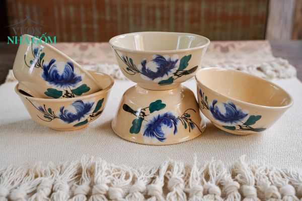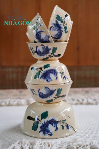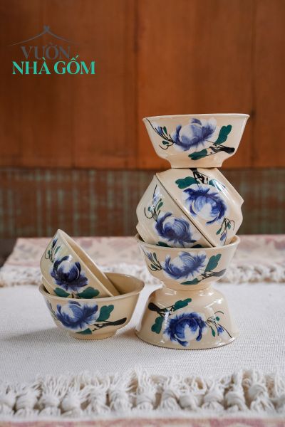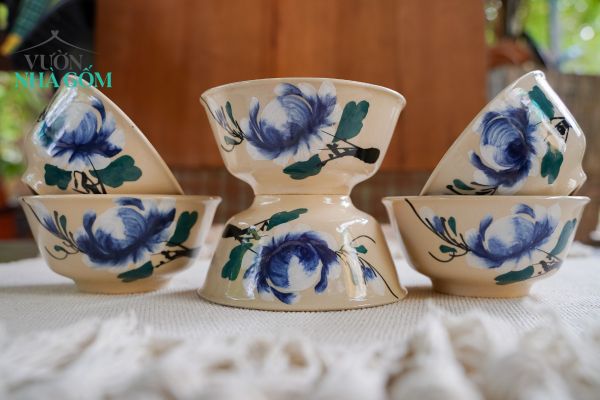BỘ CHÉN BÁT BÔNG XANH VẼ TAY