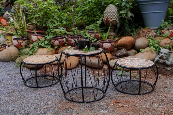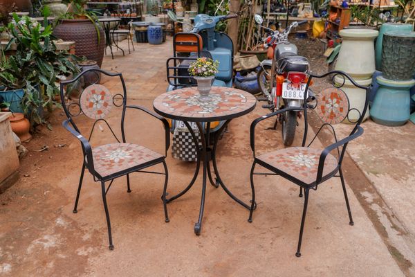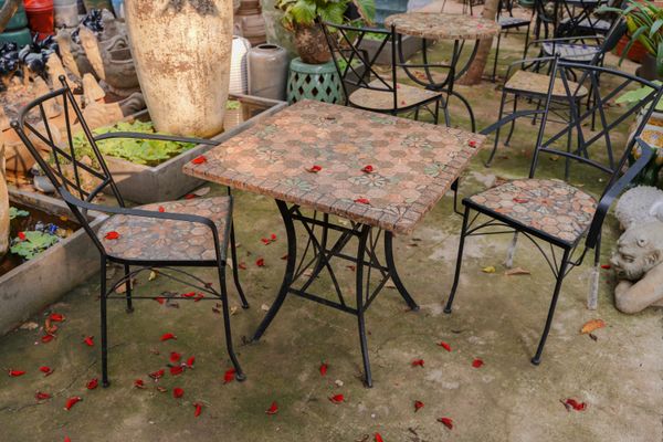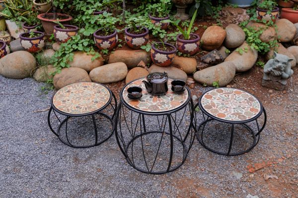Gốm và Kiến trúc | Bàn ghế ghép gốm nghệ thuật mosaic cho không gian sân vườn, ngoài trời