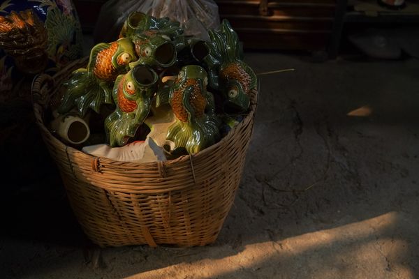 Cá gốm, tôm gốm treo tường, có lẽ không cần phải nhắc nhớ thêm về ký ức tuổi thơ và gắn liền hình ảnh người cha, người ông, ngôi nhà vùng quê Nam Bộ này.