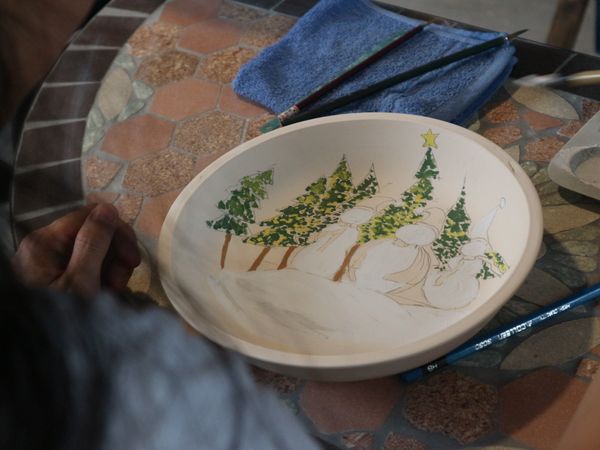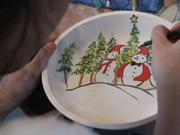 - Trực tiếp thực hiện vẽ trên chất liệu gốm theo đề tài, hình ảnh yêu thích.