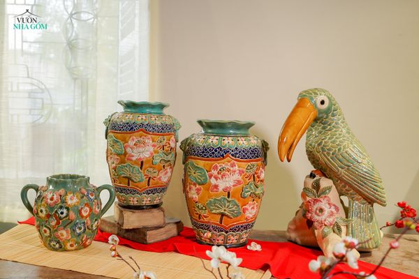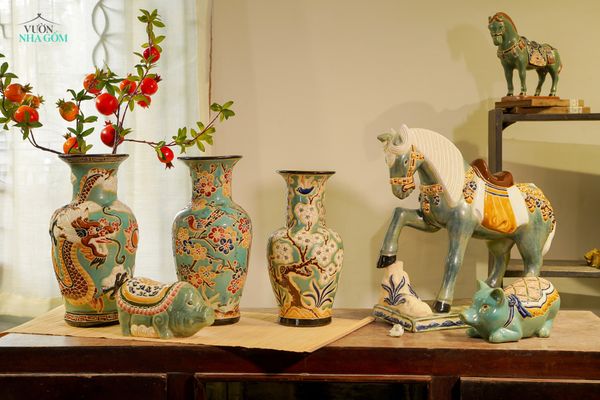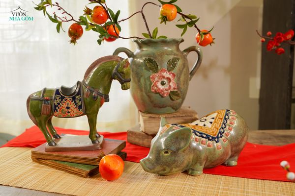 Bản thân màu men mang đến sự mỹ thuật, thư thái đặc biệt với sắc độ trung tính trang nhã và sang trọng, dễ dàng kết hợp với nhiều không gian kiến trúc cũng như các chất liệu trang trí rực rỡ khác của ngày Tết truyền thống.