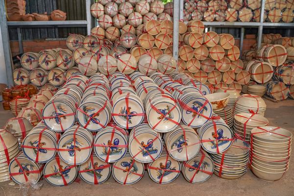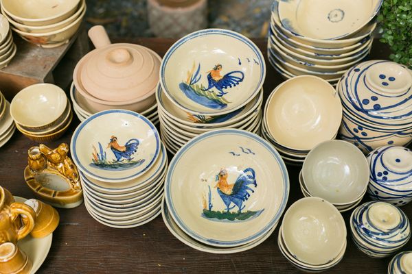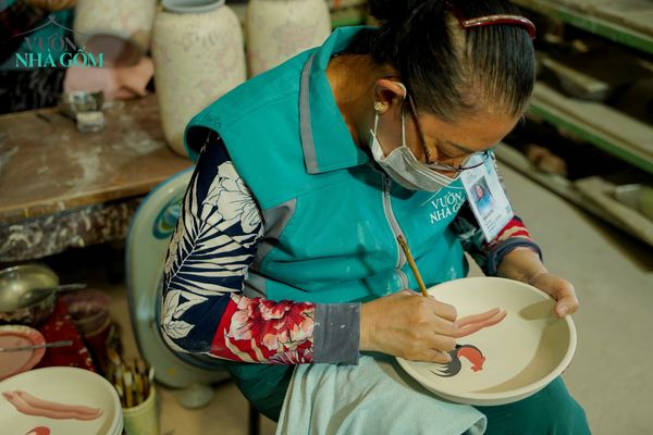 Từng cái dĩa, cái tô với từng họa tiết đều được vẽ thủ công bằng tay. Thoạt nhìn có vẻ giống nhau nhưng thực chất mỗi dĩa là duy nhất với một điểm khác biệt riêng, đôi khi còn méo mó, gồ ghề, lem màu nhưng lại trông rất ấm.