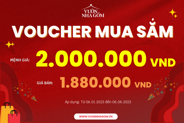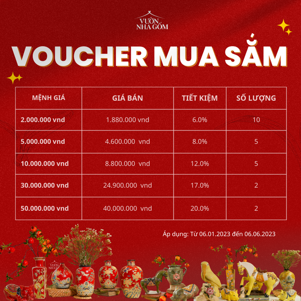 Nhằm phục vụ nhu cầu mua sắm trang trí và sử dụng dịp TẾT QUÝ MÃO và SAU TẾT của cá nhân và doanh nghiệp. Lần đầu tiên, Vườn Nhà Gốm chính thức phát hành Voucher mua sắm, với ưu đãi lên đến 20%.