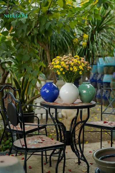 Một buổi chiều cùng bộ bàn ghế gốm mosiac, trang trí không gian sân vườn