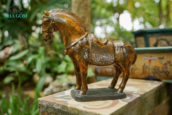 Ngựa gốm mỹ nghệ chạm khắc thủ công tinh xảo - Sản phẩm Vườn Nhà Gốm tâm huyết nghiên cứu và phát triển