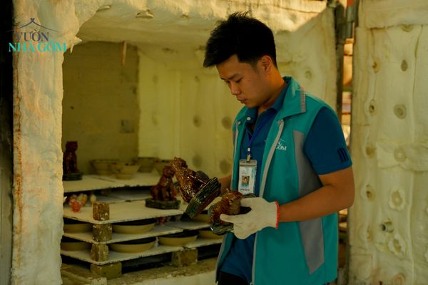 "Cô Yến ơi bữa Vườn đăng dĩa hảo với chén chiết yêu khách thích lắm luôn | Anh Tâm/ Anh June ơi bình của anh mới để showroom khách mua hết luôn rồi | Khách khen tượng này mình làm đẹp á anh Hùng..." Tuy là những câu khoe nhẹ nhẹ, vui vui, cũng có khi vu vơ nhưng để ý thì luôn thấy ánh mắt người thợ sáng lên một niềm vui khác lạ, rồi anh chị chia sẻ, đối với những người thợ gốm hay cả những người thợ tạo ra sản phẩm nói chung, không gì vui hơn khi sản phẩm của mình làm ra được đón nhận, yêu mến và đây cũng như một động lực để anh chị cố gắng mỗi ngày.