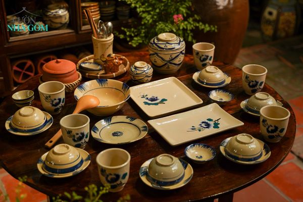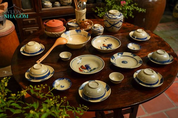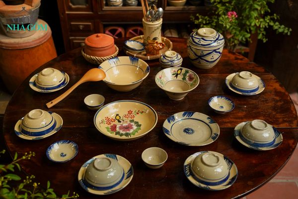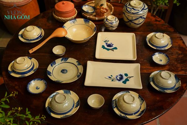 Kỳ 2: Sự kết hợp hình ảnh chén bát viền xanh và các phân khúc khác nhau trên bàn ăn.