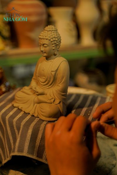 Tượng Phật A Di Đà triện Thủ Biên, lần đầu tiên được tạo hình chi tiết tỉ mỉ trên chất liệu gốm. Mỗi tác phẩm là Duy Nhất cho khách hàng hữu duyên