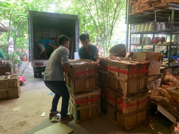 Hơn 10 chiếc pallet chén bát được đóng gói cẩn thận, gọn gàng để gửi về Cần Thơ cho một anh khách mở quán ăn. Phía sau vẫn còn gần 20 kiện hàng cần gửi đến khách lẻ, là một ngày bận rộn nhưng nhiều niềm vui ❤️