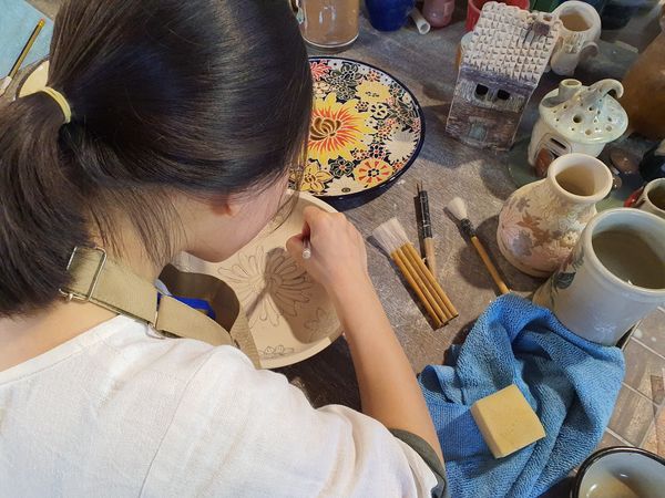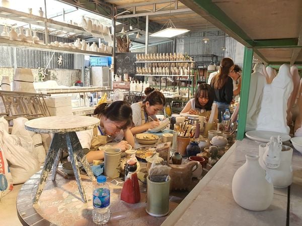 Là những ngày cùng nhau học, cùng nhau ganh đua một chút xem sản phẩm ai đạt điểm 10 của thầy Tâm - người luôn giữ nụ cười tận tụy. Những buổi ăn trưa cười rôm rả bất chấp nắng mưa, rồi nghỉ ngơi và ngắm gốm.