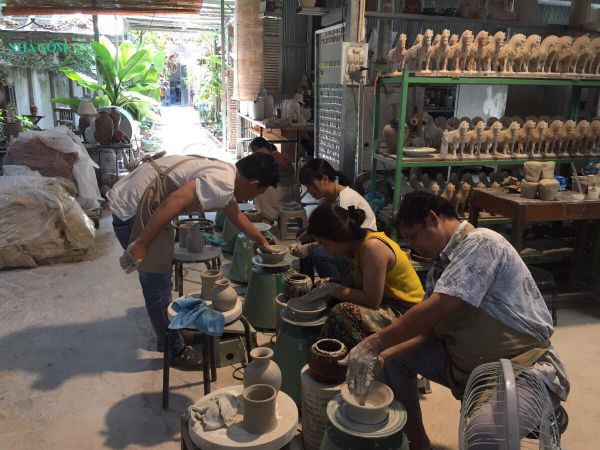 Học viên được tham quan Xưởng sản xuất gốm thủ công để hiểu rõ hơn về quy trình làm gốm thủ công. Sau đó các bạn sẽ được giảng viên hướng dẫn các thao tác cơ bản để thực hành tạo hình gốm trên bàn xoay điện.