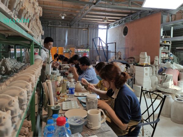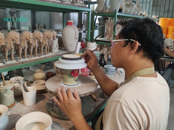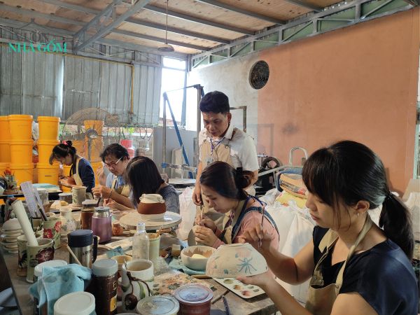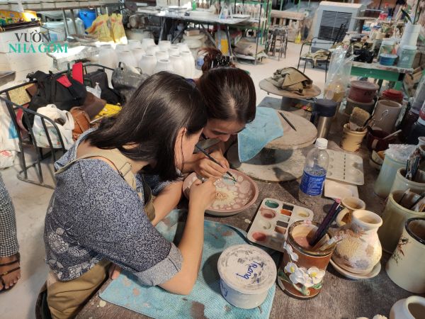 Học viên thực hành phủ men lên sản phẩm, bắt đầu hoàn thiện dần những "Tác phẩm nghệ thuật" của riêng mình.