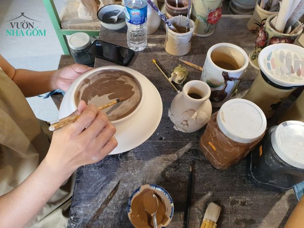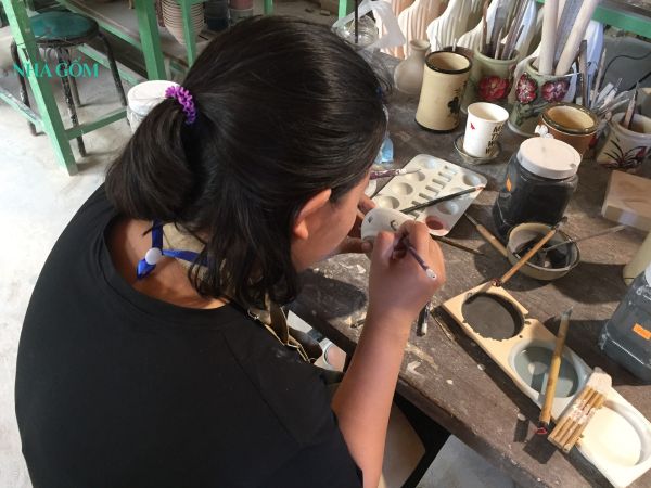 Học viên thực hành lên màu men trên sản phẩm của mình và được hiểu rõ hơn về quá trình nung sản phẩm.