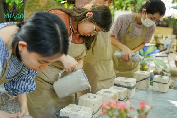 Khóa học làm gốm 16 buổi số 10 kết thúc bằng 2 buổi học đổ khuôn mới lạ, từ quy trình tạo ra khuôn mẫu cho một sản phẩm hình khối nhiều chi tiết phải trải qua nhiều quá trình khác nhau.